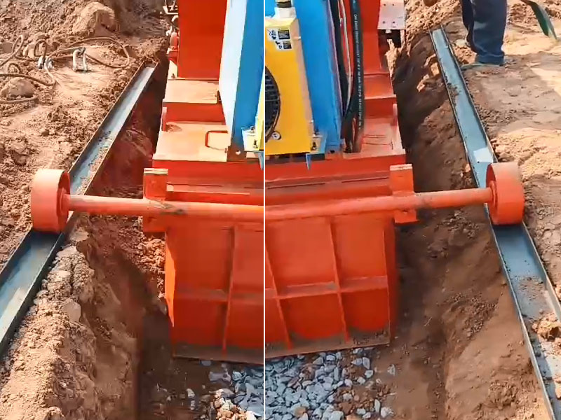 水渠機(jī)放入溝模內(nèi),槽鋼輥道已經(jīng)沒有作用了,槽鋼輥道是輔助機(jī)器行走直線的。但是這么惡劣的現(xiàn)場(chǎng),已經(jīng)用不上槽鋼輥道了。在作業(yè)過程中要把槽鋼輥道撤掉。